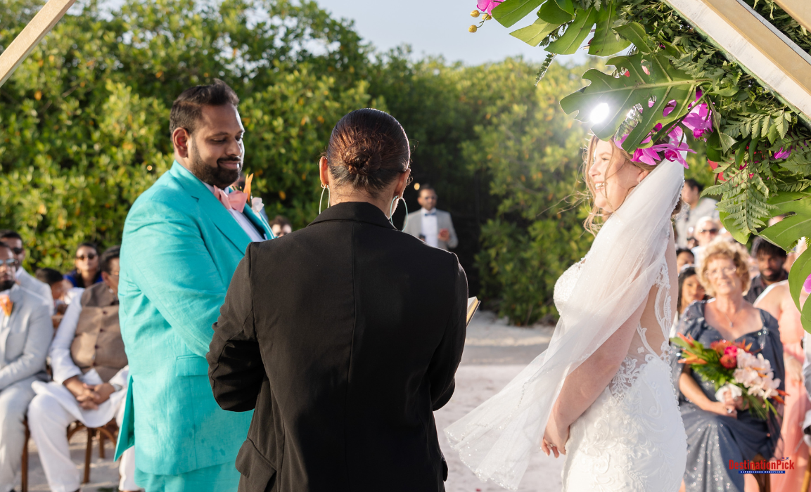 Standing face-to-face, Bevin and Susan held hands, their eyes locked in a gaze filled with love and certainty. As the words “I do” left their lips, a wave of emotion rippled through the room. Surrounded by loved ones and the serene backdrop of Aruba, this simple yet profound exchange sealed their commitment and marked the beginning of a lifetime together.