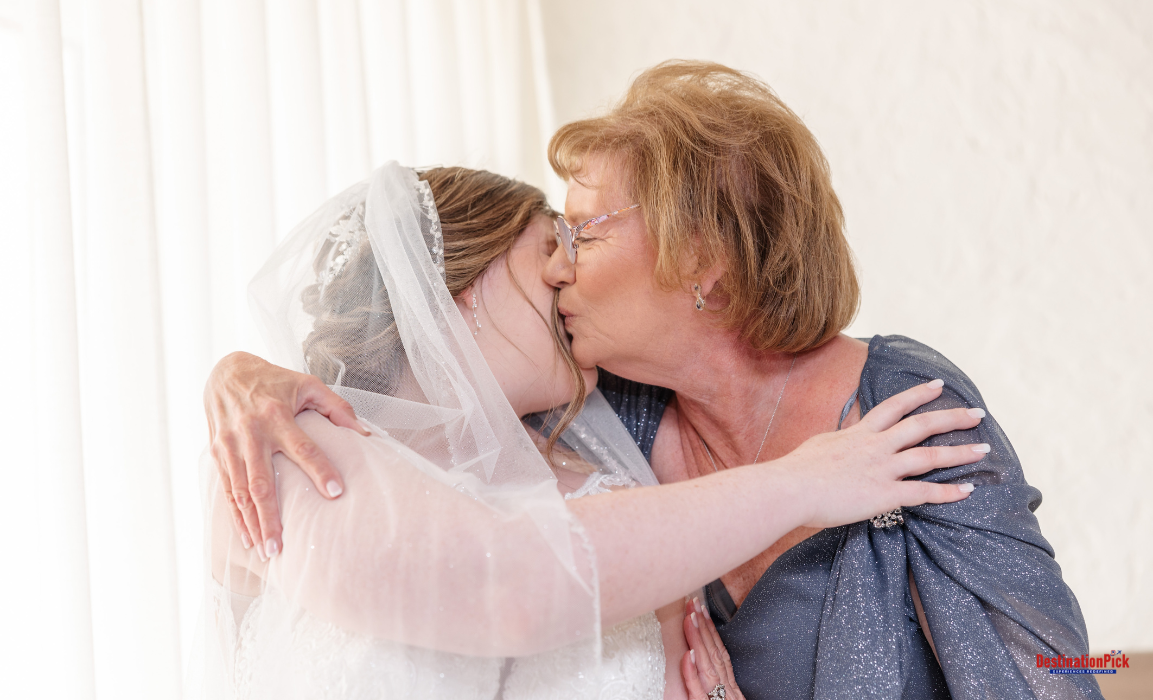 Bevin stood patiently, his hands resting lightly at his sides, his eyes scanning the distance as he waited. From behind, Susan approached quietly, her dress flowing with each step, her smile full of anticipation. When Bevin turned, their eyes met, his filled with awe and emotion, hers sparkling with joy and love. It was a moment where time seemed to stand still, their connection captured in the shared look that spoke more than words ever could.