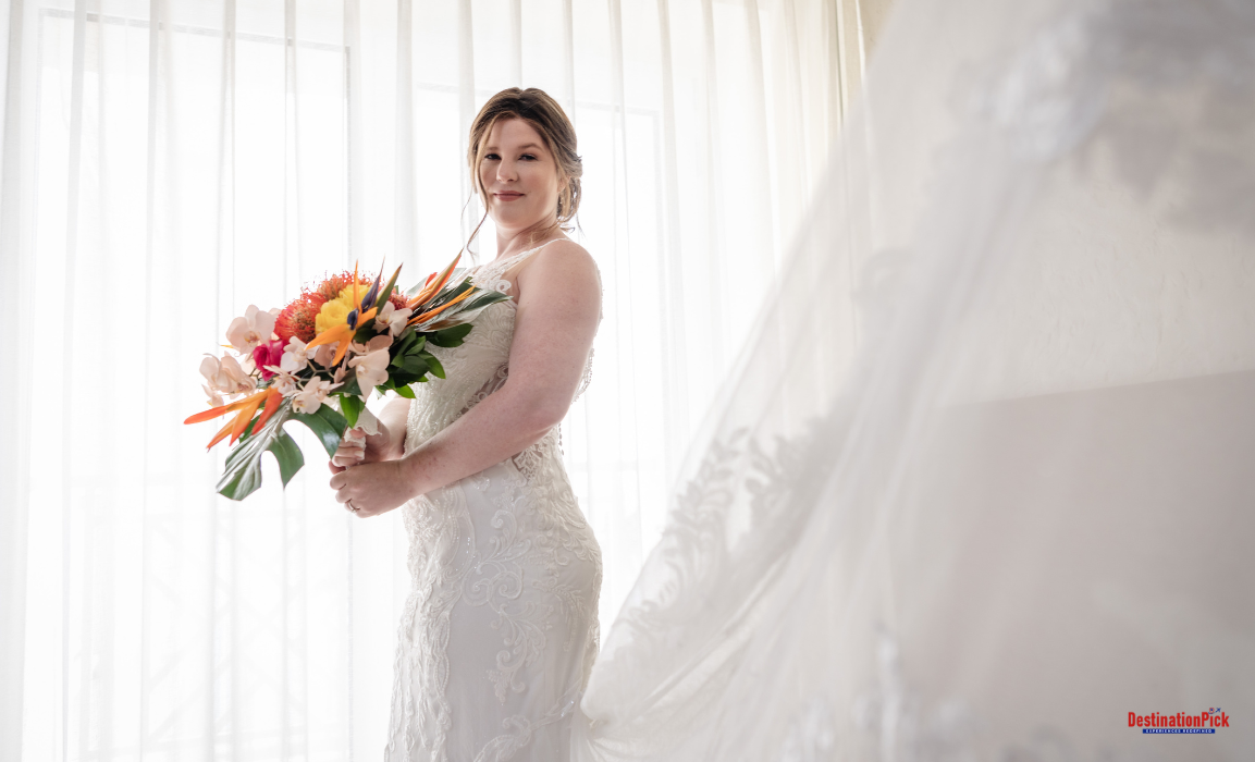 Standing gracefully in her bridal gown, Susan exuded elegance and poise. Her soft smile and radiant glow reflected the joy of the day, while the delicate details of her attire complemented her natural beauty. This single image of Susan captured the essence of a bride ready to embrace the moment and the journey ahead.