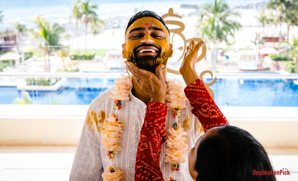 Sumit, standing tall with a bright smile, looked carefree and joyful, his face glowing with a playful splash of turmeric. His relaxed demeanor and vibrant energy reflected his excitement for the days to come. As he stood there, covered in the colors of the Haldi, it was clear that this moment marked the start of a beautiful journey with Tina.