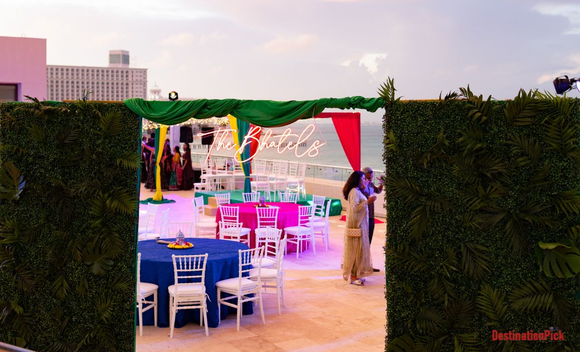 As guests arrived, the Welcome Party was an explosion of color, with tropical decor embracing the Cancun spirit. A mix of floral arches and elegant lighting welcomed everyone, perfectly combining the destination’s charm with the couple’s warmth.