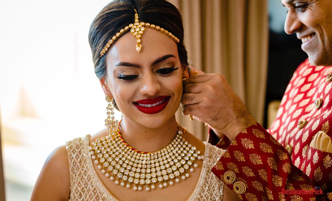 In separate suites, Tina and Sumit were getting ready for the biggest moment of their lives. Tina, dressed in a stunning bridal lehenga, sat with a quiet smile as her loved ones surrounded her, gently preparing her for the wedding. Her calm demeanor, paired with the sparkle in her eyes, reflected the joy and excitement she felt. Each piece of jewelry placed on her made her glow even more, but it was her serene smile that spoke volumes.